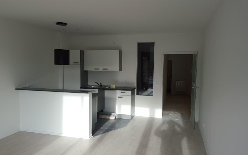 Die Wohnung ist mit einer Einbauküche mit Kochinsel ausgestatttet.